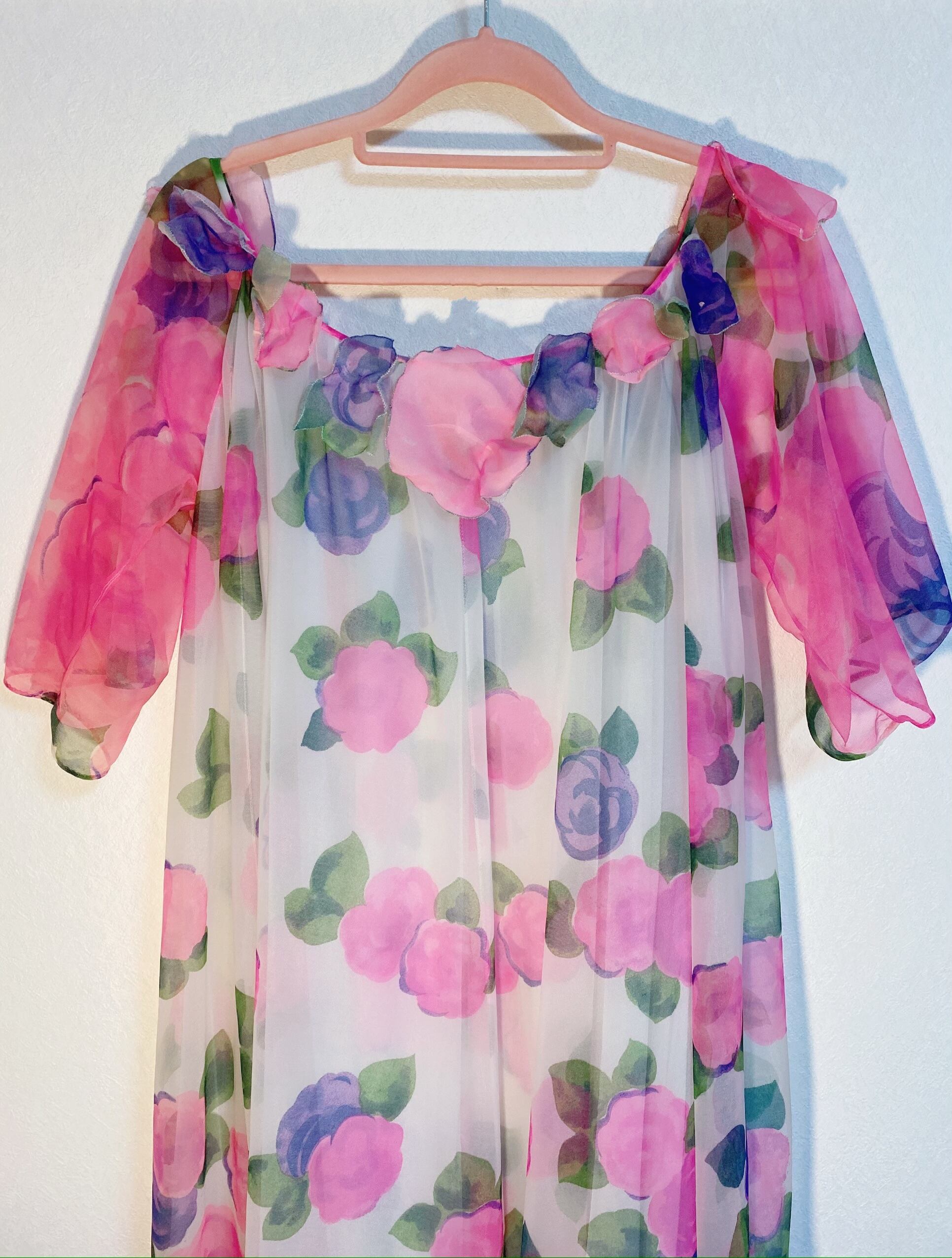 お花 が 全面に描かれた チュール の ロングガウン です