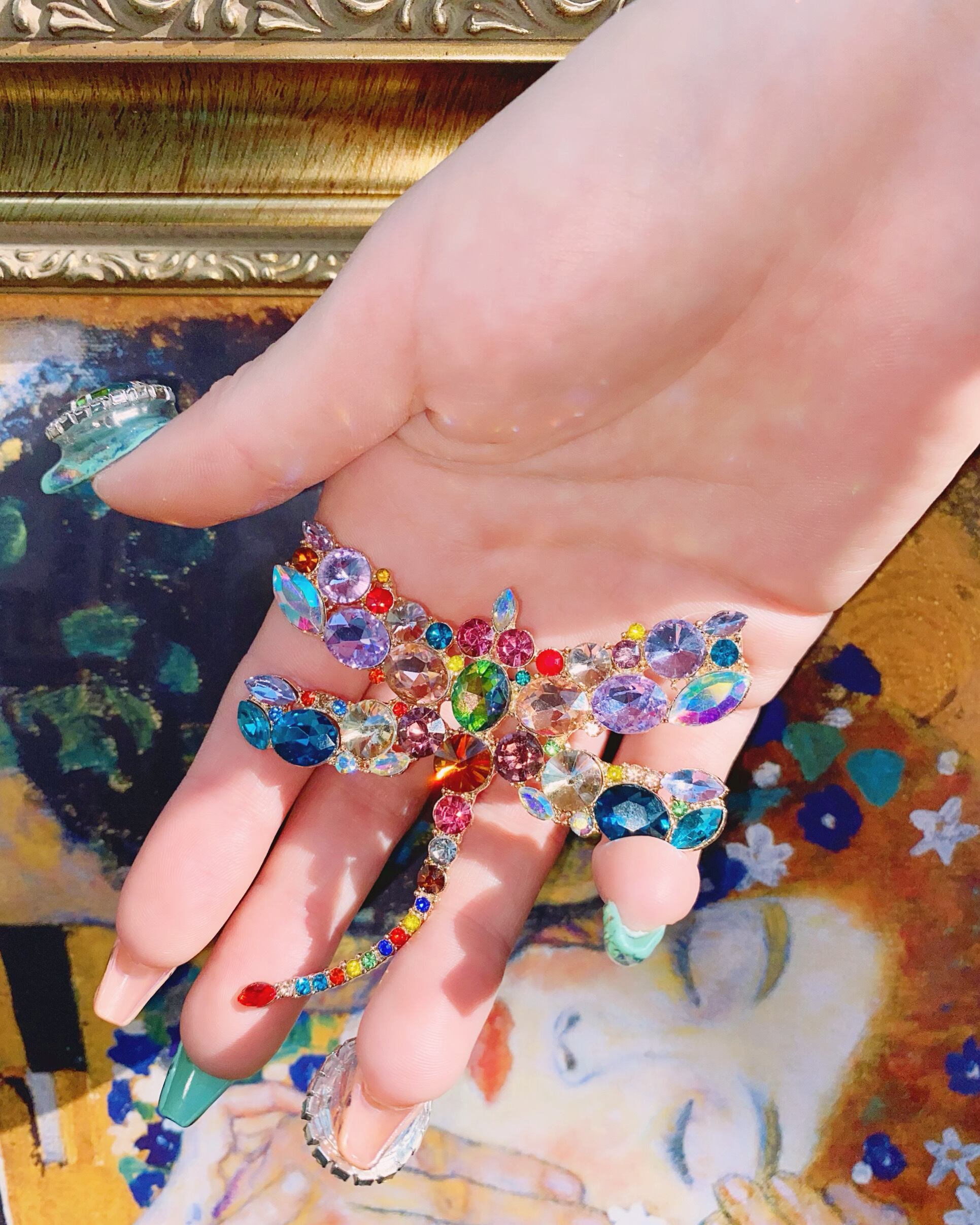 ビジュー も 大粒 で 様々 な 色 が 使われていて